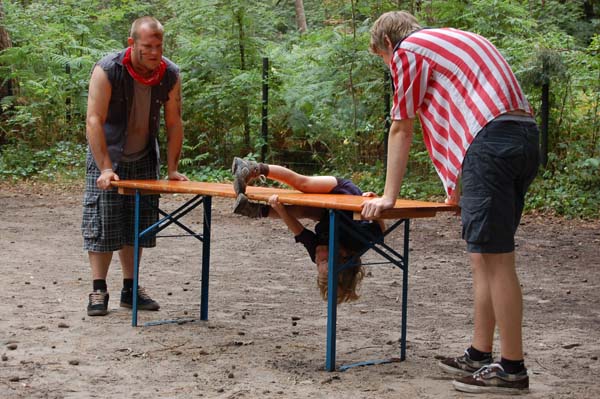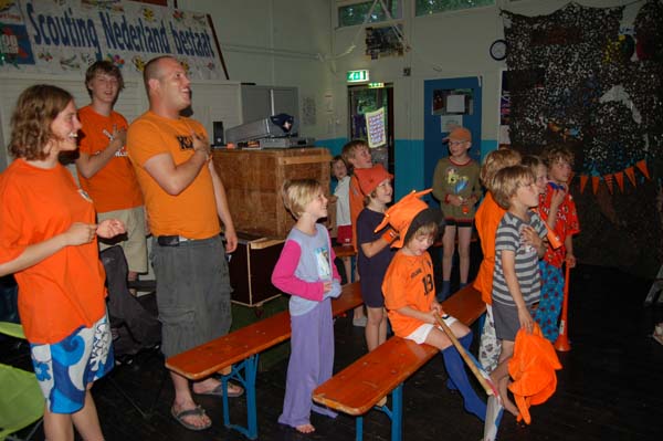 Na weken dan wel niet maanden voorbereiden en leuke dingen bedenken gaan we dan eindelijk op kamp. De leiding verzamelde vanmorgen om 9 uur op het clubhuis om alle spullen in te laden en te vertrekken naar Baarn. De sfeer zat er al meteen in door de heerlijke temperatuur:P. Na een rit van ongeveer een uur en een aantal verkeerde afslagen hadden we dan toch echt het kampclubhuis bereikt. Het enige wat ons toen nog te doen stond was de sleutel halen en alles klaarzetten voor de komst van de kinderen. Om 3 uur kwamen de kinderen en de ouders aan en werden de bedjes klaargelegd. Na vertrek van alle ouders kan het kamp dan toch beginnen.