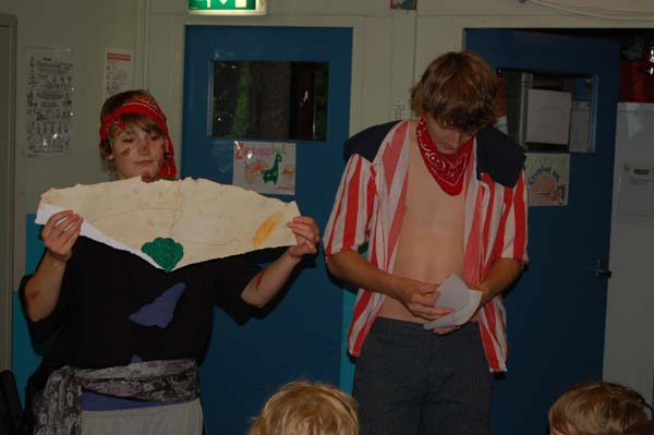 Na het eten gaan de kinderen vanavond vrij snel naar hun bed. Eerst varen we vandaag weer uit met de kapitein die ons terug zal varen naar de bewoonde wereld. De kapitein is zo blij dat de esta's hem geholpen hebben met het vinden van de schat dat hij de kinderen een heus piratendiploma uitreikt. Hierna gaan ze snel naar hun bed. De leiding krijgt namenlijk visite van enkele mensen. Dit is echter niet de enigste reden dat ze vroeg naar bed moeten, we hebben vanavond nog een avondspel. De kapitein is ontvoerd door Slechte Rik en zijn handlanger Foute Roel. Slechte Rik wil de kapitein ruilen voor het goud. Linke twijfelt daar geen moment aan en geeft het goud aan Slechte Rik, want zonder kapitein zal het piratenschip niet uit kunnen varen.