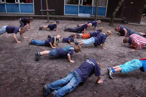 - Red de drenkeling: De kinderen moeten 1 iemand optillen en zo snel mogelijk rond een pion lopen.